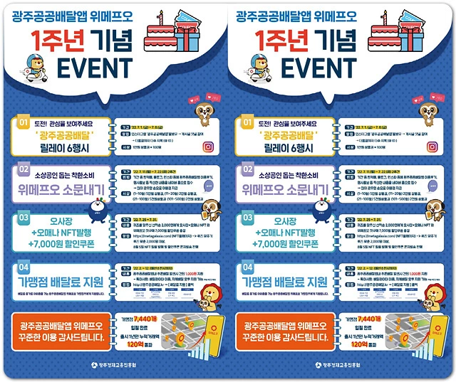 광주공공배달앱 위메프오는 소상공인의 중개수수료 부담완화와 매출증대를 위해 2021년 7월에 출시한 배달서비스로 지난 1년간 가맹점 7500여 곳, 누적거래 52만2700여 건을 기록하며 지역대표 플랫폼으로 자리매김하고 있다.