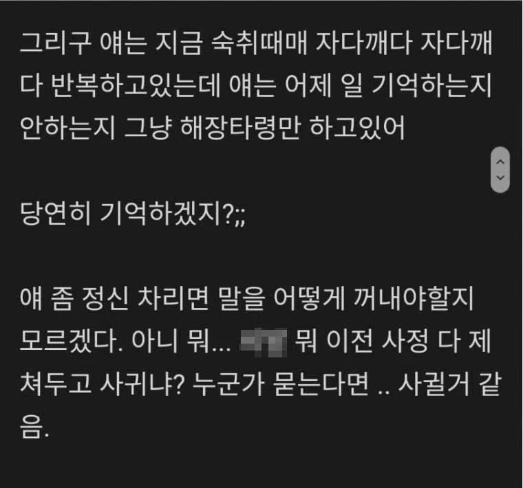 “여사친, 간밤 일 기억하는지 모르겠다”