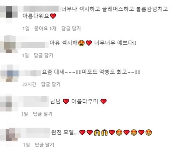 해당 사진을 본 SNS 이용자들은 한소영 인스타그램에 "너무 섹시하고 글래머러스해요", "너무 섹시해요. 너무 예뻐요", "아름다워요", "완전 모델", "미모도 먹방도 최고" 등 반응을 보였다.