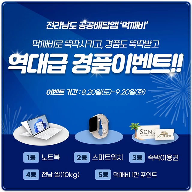 노트북 및 전남 브랜드 쌀 등 600명에게 지급, 8.20.~9.20까지 진행