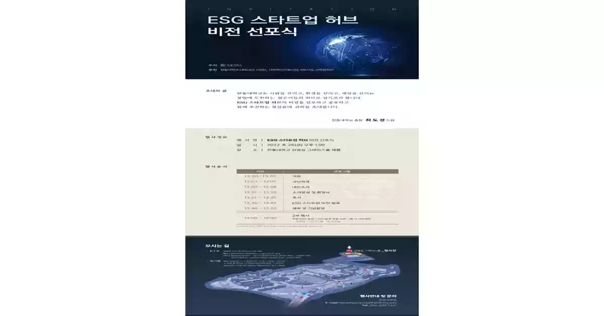 ESG 창업센터 1호 설립과 향후 비전에 대한 내용을 담을 이번 선포식을 통해 추가적인 창업센터 설립 및 지원을 통해 ESG 스타트업 허브로서의 입지를 공고히 할 예정이다.