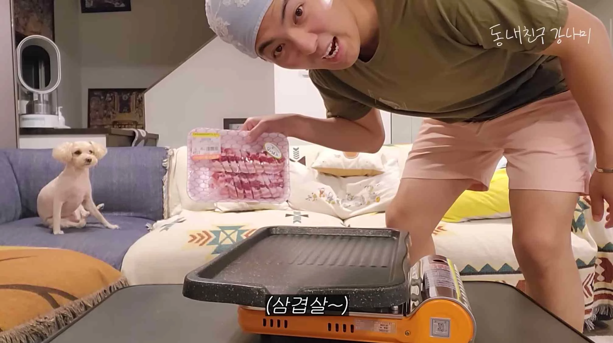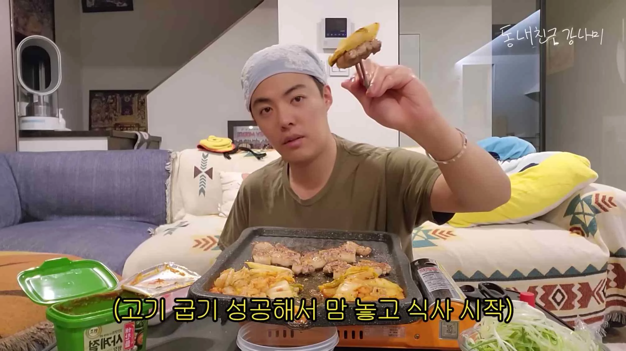 이에 공개된 영상에는 강남이 오전 1시 44분 아내 이상화 몰래 삼겹살 먹방을 찍는 모습이 담겼다. 강남은 “와이프가 지금 푹 자고 있을 때 삼겹살을 구워서 먹어보도록 하겠다. 이거 되면 대박이다. 왜냐하면 일단 가스 켤 때 소리가 난다. 그리고 고기 구울 때 소리가 계속 난다. 그런데 그걸 성공했다? 이거는 대박이다”라며 즐거워했다.