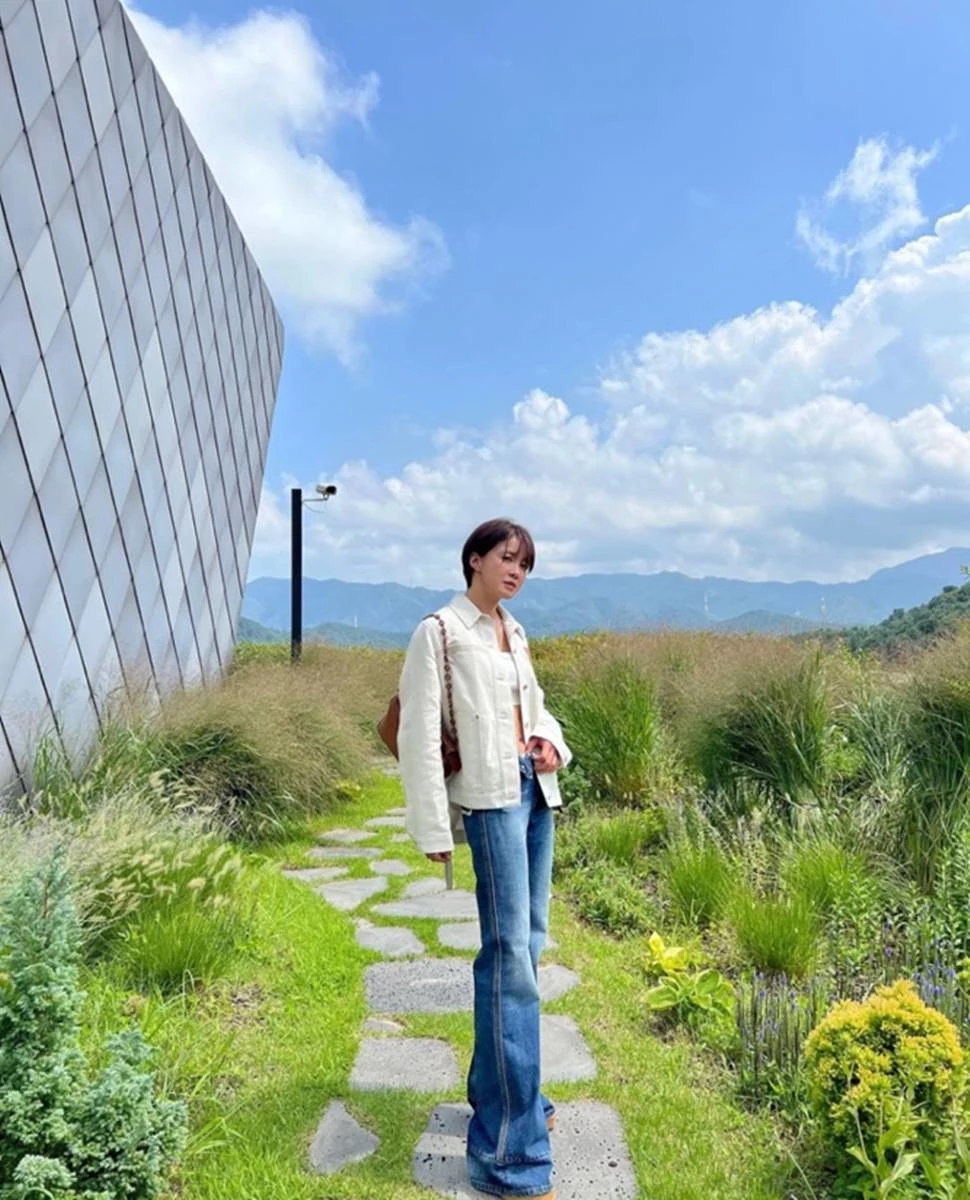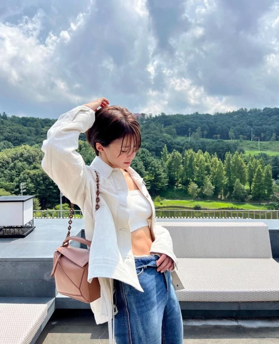 해당 사진은 야외 옥상 등 곳곳에서 촬영됐다. 이시영은 화이트 재킷과 부츠컷 진을 매치했다. 허리 부분은 살짝 접어 탄탄한 복근을 드러내기도 했다.