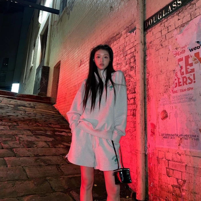 공개된 사진 속에는 맨투맨에 반바지 트레이닝복 차림을 한 유아 모습이 담겼다. 자유롭게 밤거리를 활보하는 그는 마치 화보 속 한 장면을 연상케 했다.
