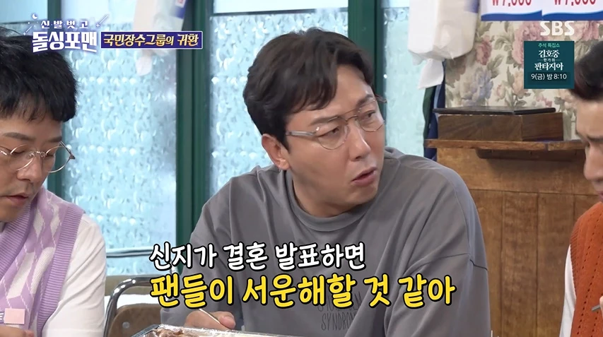 탁재훈은 "솔직히 신지가 결혼한다고 하면 팬들이 다 서운해할 것 같다. 너는 그냥 혼자 사는 게 맞는 것 같다"고 말해 웃음을 자아냈다.
