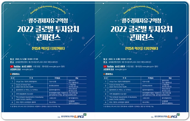 광주경제자유구역청(이하 ‘광주경자청’)은 9월5일부터 이틀간 김대중컨벤션센터에서 첨단기업 투자유치와 잠재투자자(기업)발굴 및 네트워크 확대를 위한 국제행사로 ‘2022 글로벌 투자유치 콘퍼런스’를 개최한다.