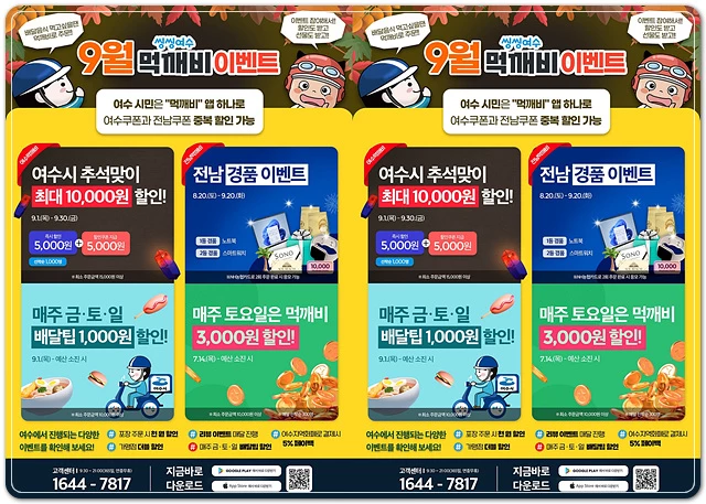 여수형 공공배달앱 ‘씽씽여수 먹깨비’가 추석 명절을 맞아 9월 한 달간 통 큰 이벤트를 진행한다.