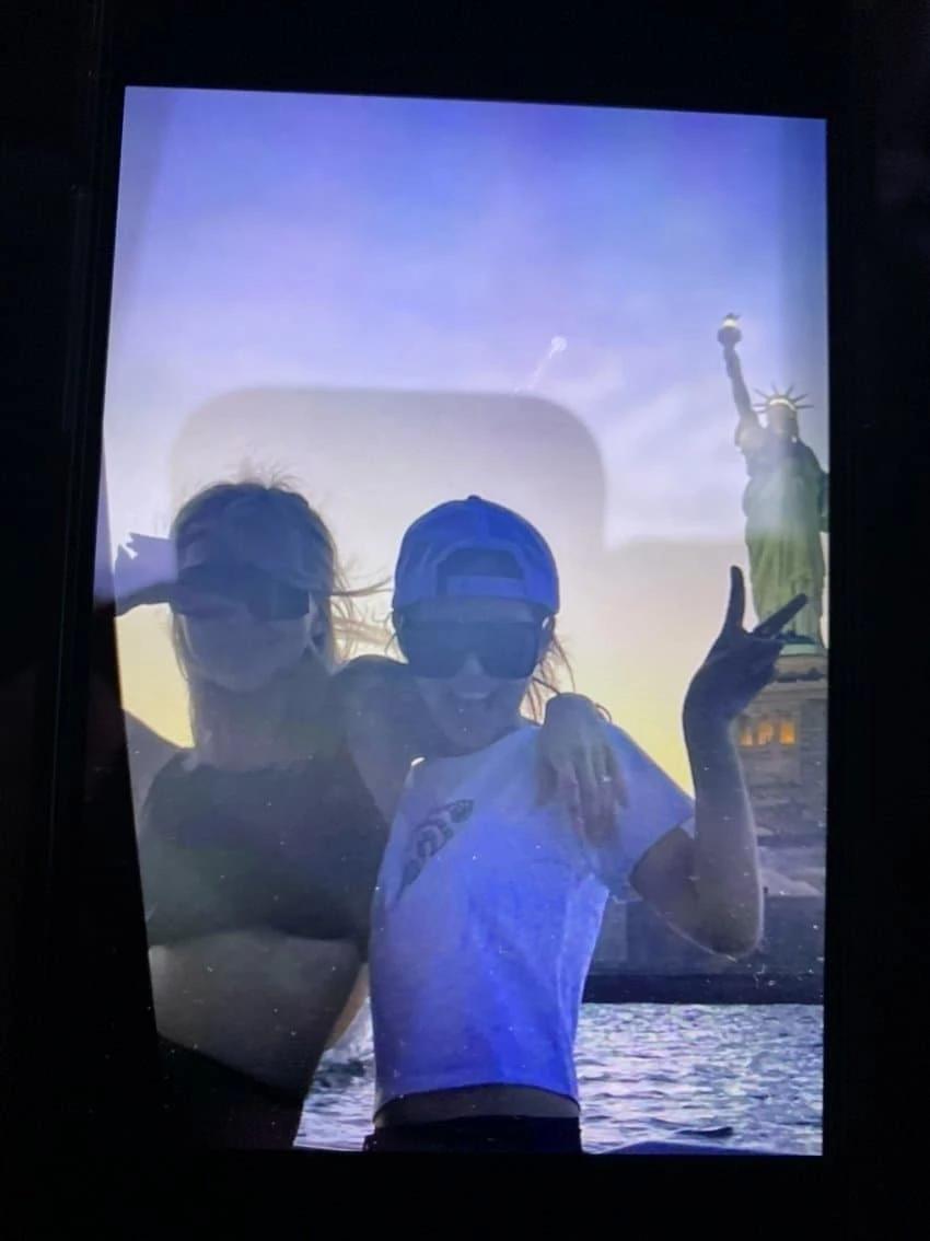 이뿐만이 아니었다. 얼마 전 미국 스케줄에서 찍은 사진들도 있었다. 제니와 로제는 어깨동무를 한 채 브이자를 그리고 있었다.