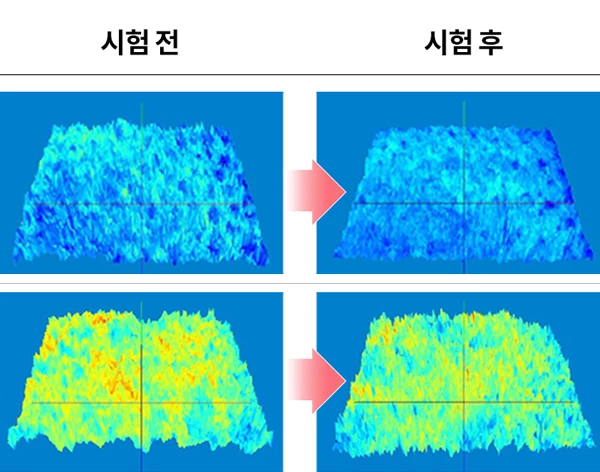 미세전류는 피부 표면에 일시적인 통로를 만들어 화장품의 유효 성분을 깊숙이 전달한다. 실제 지난해 국내피부과학연구소가 인체적용시험을 진행해본 결과, 셀라이너를 사용했을 때 피부 평탄도가 즉각적으로 개선됐다.
