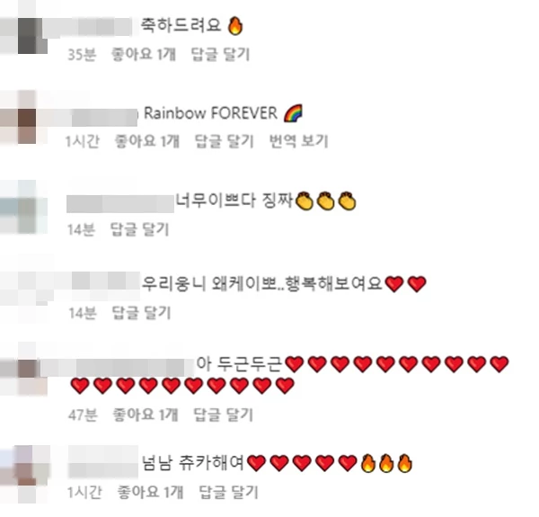 해당 사진을 본 누리꾼들은 고우리 인스타그램에 "축하드려요", "레인보우 포에버", "너무 예쁘다 진짜", "너무 예뻐요. 행복해 보인다", "두근두근 설레요", "너무너무 축하해요" 등 반응을 보였다.