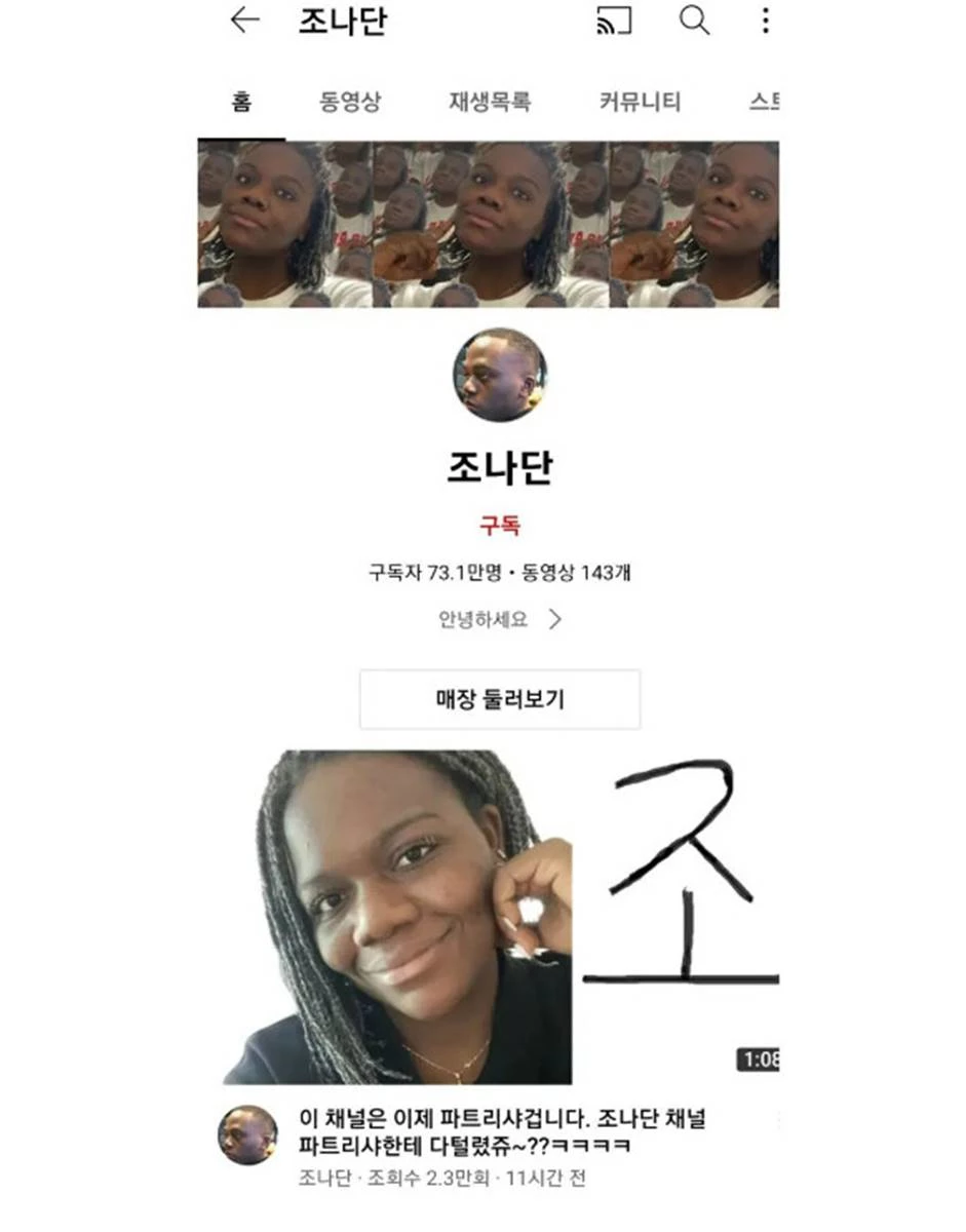 먼저 인사를 올린 조나단은 “금일 새벽 00:30분가량 저의 호적 메이트 파트리샤 양의 물의로 저의 유튜브 채널이 불미스러운 사고를 당하는 일이 있었다”고 운을 뗐다.