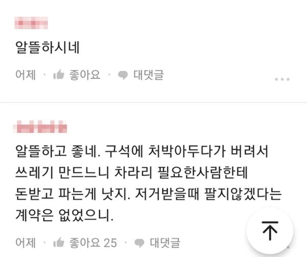 이어 "어느 부서 어떤 신입사원인지는 모르겠지만, 민망하고 구질구질해서 절대 안 만났으면 좋겠다"고 강하게 비난하며 당근마켓에서 캡처한 인증샷을 첨부했다.