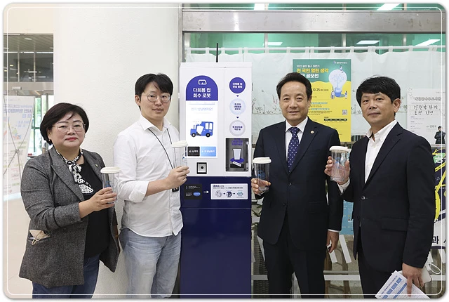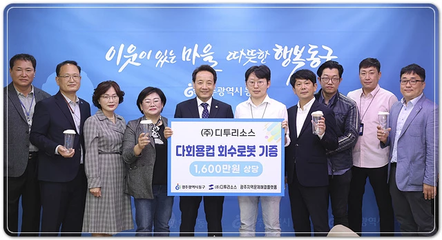 광주시 동구(청장 임택)는 '다회용컵 사용 활성화 공공기관 시범사업'으로 동구청 주변 카페 10개소와 협업하여 1회용품 사용 줄이기 실천을 위한 인공지능 다회용컵 회수로봇을 본관 1층에 설치해 17일부터 운영한다.