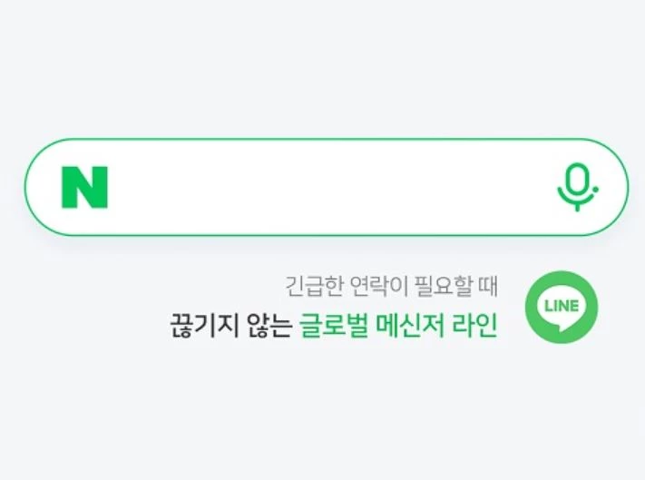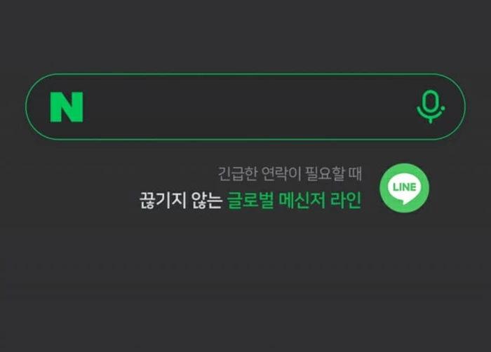 지난 15일 네이버는 모바일 앱 키워드 검색창 메인 화면에 자사 메신저 서비스 '라인'을 광고했다.
