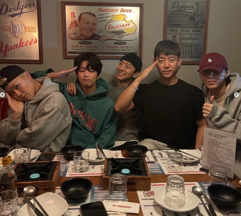 공개된 사진에는 오랜만에 모인 B.A.P 멤버들이 포즈를 취하고 있다. 다만 최근 강제추행 혐의로 재판 중인 멤버 힘찬의 모습은 보이지 않는다.