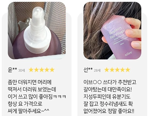 이럴 때 '헤어 식초'를 사용하길 추천한다. 헤어식초를 사용해 본 사람들은 샤워한 후 2~3초만 투자하면 정수리 냄새가 없어진다고 입을 모은다. 정수리 냄새뿐만 아니라 답 없던 빗자루 털 머리카락까지 빠르게 해결해 준다고.