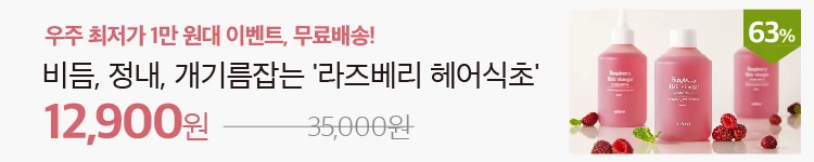 헤어스파&두피스케일링 효과를 한 번에 누릴 수 있는 '라즈베리 헤어식초'는 온라인 쇼핑몰 택샵에서 63% 할인된 최저가 12,900원에 구매할 수 있다.