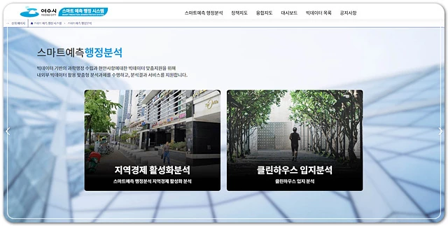 ‘스마트 예측행정시스템’은 여수시의 맞춤 데이터와 지도를 융합한 정책지도를 말하며, 사회‧경제 및 시정현황 등 다양한 분야에서 분석 자료로 활용될 수 있다.