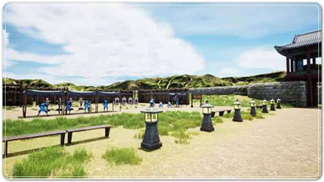‘남도진성 메타버스 체험관’은 조선시대의 남도진성을 시간여행 할 수 있도록 하는 XR 기술 기반의 다양한 콘텐츠로 구성하였으며, 소실된 장소의 활발했던 과거 시간으로 남도진성의 과거 건물과 수군의 훈련 모습 등의 가상관광을 즐길 수 있다.