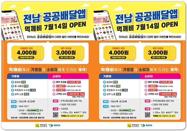 한편 먹깨비 가맹점 신청은 먹깨비 홈페이지, 업주용 ‘먹깨비 사장님’ 앱, 먹깨비 고객센터(1644-7817) 등을 통해 가능하다. 소비자는 구글 플레이나 앱스토어에서 ‘전남 공공배달앱’이나 ‘먹깨비’를 검색해 앱을 내려받아 사용하면 된다.