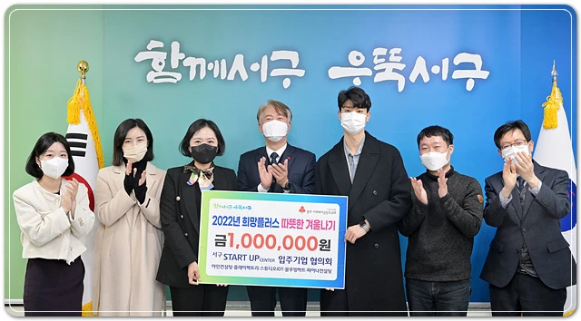 김이강 광주시 서구청장은 8일 오전 서구 스타트업센터 입주기업협의회로부터 연말연시 도움이 필요한 지역의 이웃을 위한 후원금(100만원)을 전달받고 감사의 마음을 전했다.