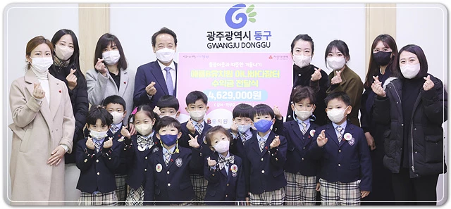 애플B유치원(원장 최봉훈)은 14일 광주시 동구청 접견실을 방문 학부모와 교직원 일동이 먹거리, 반찬, 생활용품 등 아나바다 장터운영 수입금 463만 원을 관내 저소득가구에 전해달라며 동구에 기탁했다.