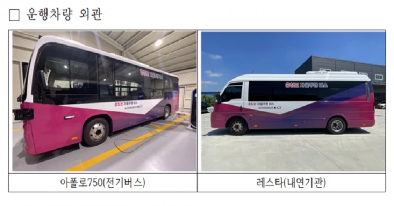 이번에 운행되는 자율주행버스는 레벨3 수준의 자율주행기술이 적용된 전기버스(14인승 아폴로750, 1대)와 일반승합버스(15인승 레스타, 2대) 등이다.