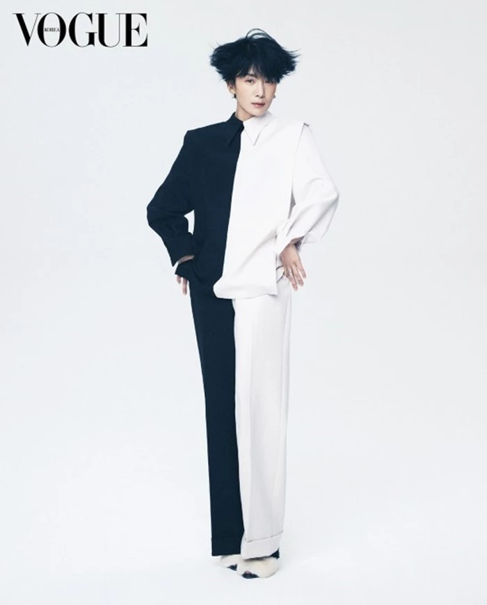 그는 군살 하나 없이 날씬한 몸매로 모델 포스를 뽐내며 흑과 백이 섞인 유니크한 의상도 무리 없이 소화했다.