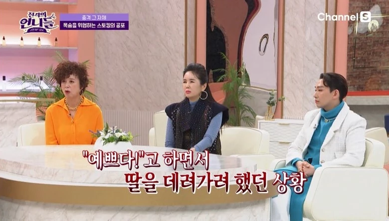 그러면서 "스토커가 '정숙이 너는 내 거다', '다른 남자 만나지 마'라면서 차에 낙서를 해놓고 갔다. 또 다른 스토커는 지하 주차장에 숨어있다가 출근하려니까 뒤에서 몸을 잡아당겨 자기 차에 실으려고 했다. 눈에 살기가 가득했다. 언제는 흉기로 저를 위협한 적도 있었다"며 위험천만했던 상황을 전하기도 했다.