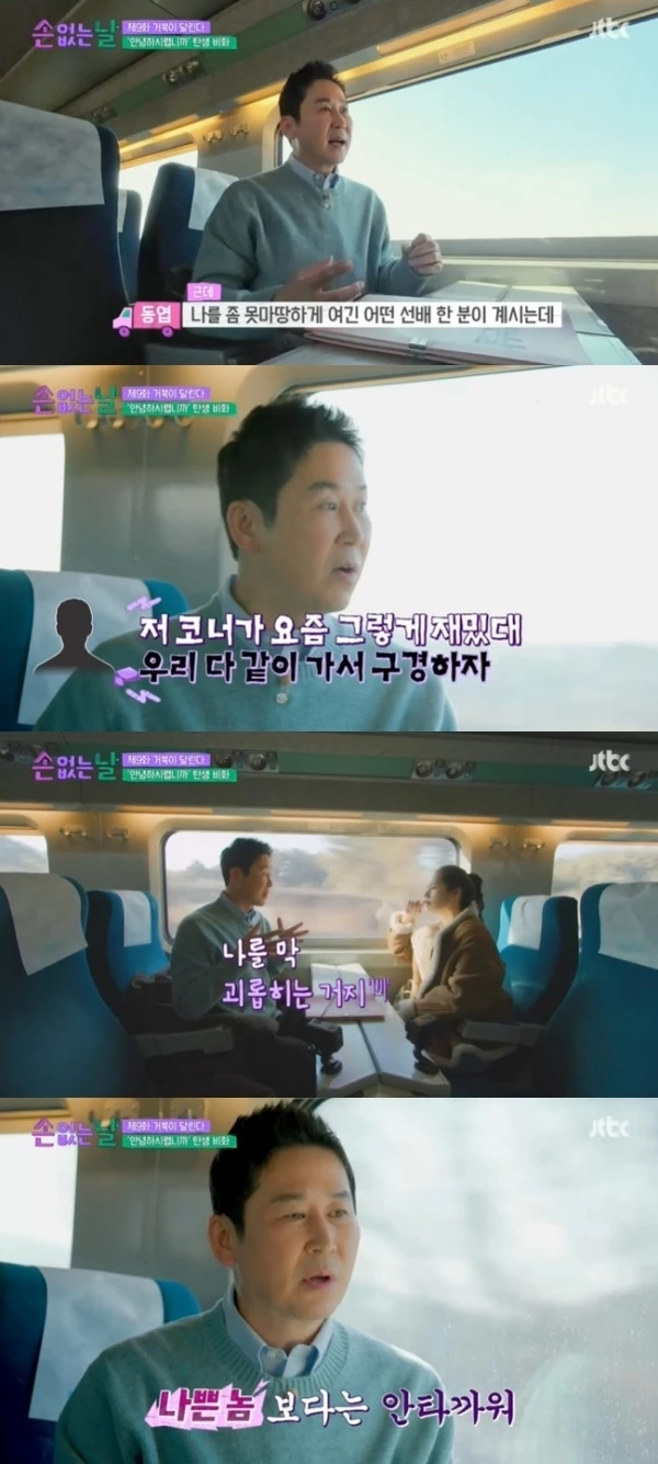 지난 20일 방송된 JTBC 예능 프로그램 '손 없는 날'에는 의뢰인을 만나기 위해 기차를 타고 대전 향하는 개그맨 신동엽과 배우 한가인이 담겼다.