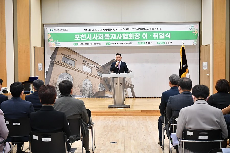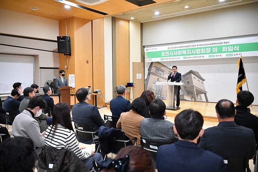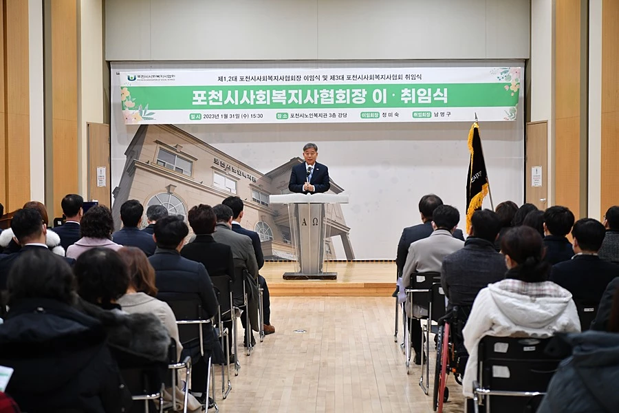 경기 포천시사회복지사협회(회장 남명구)는 지난 31일 포천시노인복지관 강당에서 포천시사회복지사협회장 이·취임식을 진행했다.
