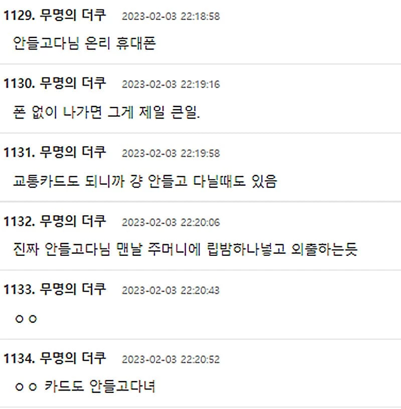 온라인 커뮤니티 '더쿠' 네티즌들은 "맨날 지갑 챙기는 거 까먹는다", "안 들고 다닐 때가 많다", "지갑이 집에만 있어서 새 거다", "폰 없이 나가면 그게 제일 큰일", "멀리 여행 가도 지갑 안 챙긴다"라고 반응했다.
