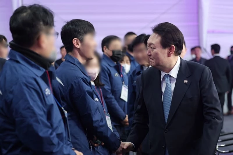 윤석열 대통령은 지난 10일 오후 현대중공업 군산조선소에서 개최된 ‘현대중공업 군산조선소 선박 블록 첫 출항식’ 행사에 참석했다.