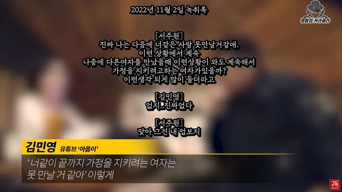 '도우미, 룸살롱, 불륜 영상'… 아옳이, 전남편 서주원의 '빼박' 외도 증거 공개했다