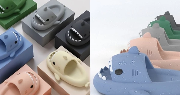 귀여운 상어로 포인트를 준 EVA 소재의 푹신한 슬리퍼로 실내외 어디서나 사용 가능하다. 가벼운 착용감으로 발목에 무리를 주지 않고 기하학적인 텍스처로 미끄러움을 방지한다. 핑크, 딥그린, 베이지, 에쉬그레이, 차콜, 블루 6가지 컬러에 가격은 16,800원. (바로가기)