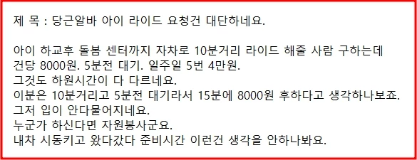 “대기했다가 차로 아이 태워다주면 8000원 줍니다”...웃픈 당근알바 구함