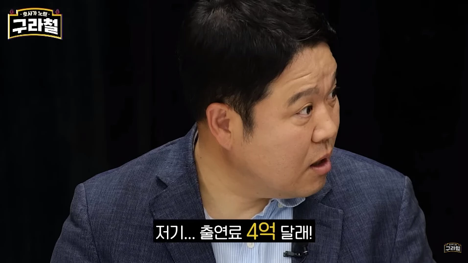 이어 김구라는 "근데 요즘 보니까 배우들 몸값이 상당하다. 아이돌 중에 연기하는 친구인데 이름을 말하긴 좀 그런데 출연료를 4억 달라고 하더라. 근데 그게 실제더라. 그 친구들은 팬이 어쨌든 간에 글로벌한 그런 또 아티스트니까 그만큼 배우들의 몸값이 엄청 올라갔다"며 제작비에서 배우 출연료가 차지하는 부분이 크다고 지적했다.