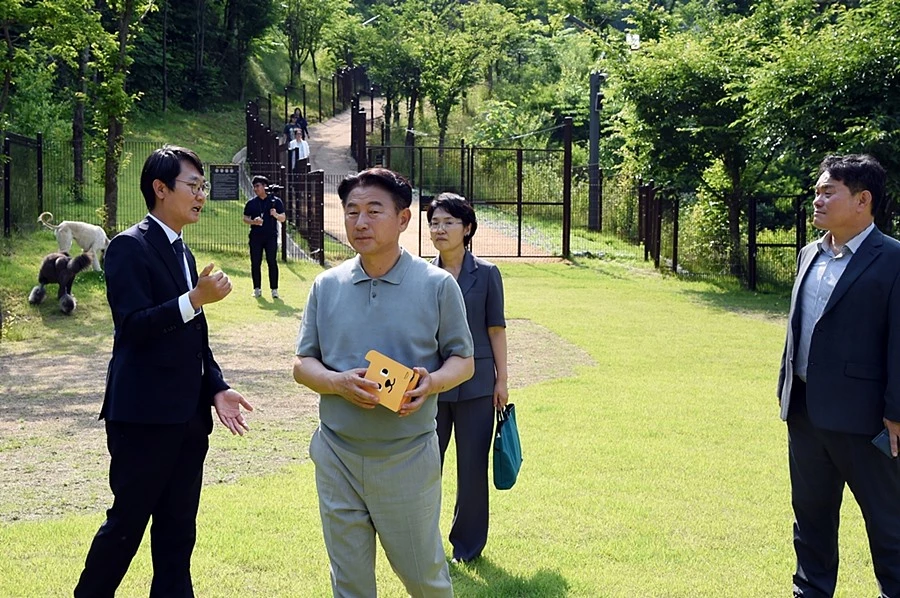 김동근 시장은 시 정책 특보, 동물관리부서 및 강아지숲 관계자들과 함께 90여 분간 강아지숲 전반을 둘러봤다.