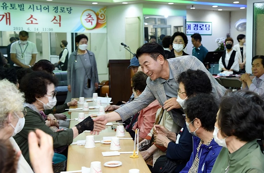 김동근 의정부시장은 지난 14일, 신일유토빌시니어경로당 개소식에 참석해 어르신들을 축하했다.