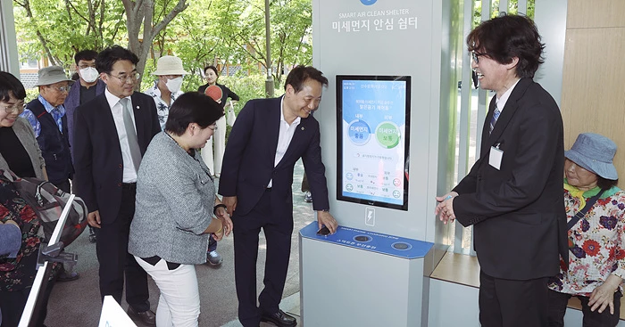 광주시 동구(청장 임택)는 19일 산수문화마당에 대기오염으로부터 지역 주민들을 보호하기 위한 “미세먼지 안심 스마트 쉼터”를 설치하고 개소식을 개최했다.