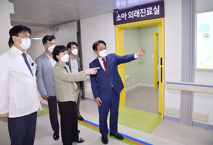 강기정 광주광역시장이 3일 오전 남구 광주기독병원과 공공심야어린이병원 운영‧지원 업무협약에 앞서 진료실을 둘러보고 있다./광주광역시 제공