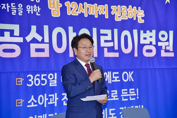 강기정 광주광역시장이 3일 오전 남구 광주기독병원에서 열린 '광주시-광주기독병원 공공심야어린이병원 운영‧지원 업무협약식'에 참석해 인사말을 하고 있다./광주광역시 제공