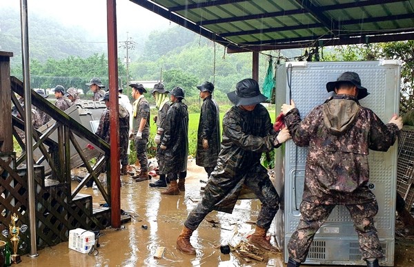 20일에도 국방부는 이날 경북 예천을 포함해 44개 시군에 장병 1만 200여 명과 장비 640여 대를 투입해 실종자 수색과 피해 복구 등을 지원한다고 밝혔다.