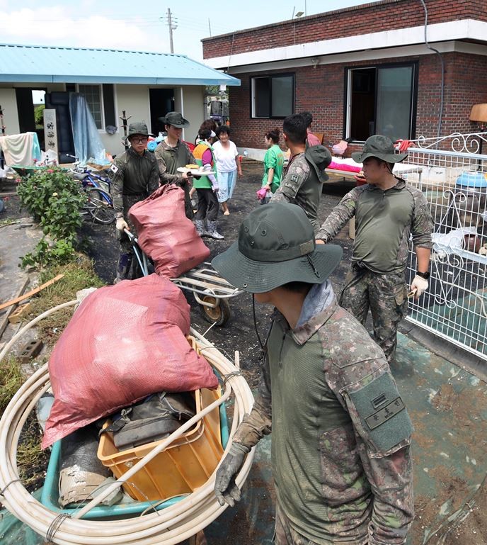 군은 이번 수해 피해 대응을 위해 지난 15일부터 연인원 장병 3만 2000여 명과 장비 1210여 대를 투입했다.