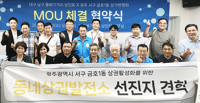 광주광역시 서구 금호1동 상인회와 대구 남구 물베기거리 상인회가 지난달 30일 대구 명덕역 물베기상인회와 업무 협약을 체결했다.