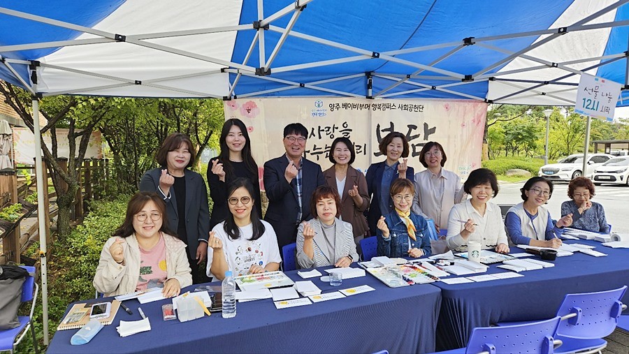 서정대학교(총장 양영희)와 양주 베이비부머 행복캠퍼스는 추석명절 맞이 양주시옥정종합사회복지관 행사 지원의 일환으로 기부금 전달 및 캘리그라피 체험부스 운영을 통해 지역사회에 기여하는 활동을 실시했다.