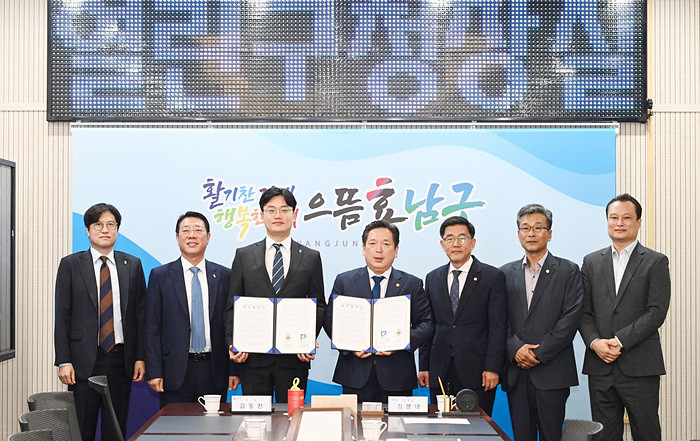 광주시 남구는 10일 구청 열린민원실에서 광주대학교와 청년 취·창업지원 및 우수 인재양성을 위한 업무협약식을 가졌다. 김병내 남구청장을 비롯한 김동진 광주대 총장 등 양 기관 참석자들이 협약식을 마치고 기념촬영을 하고 있다.