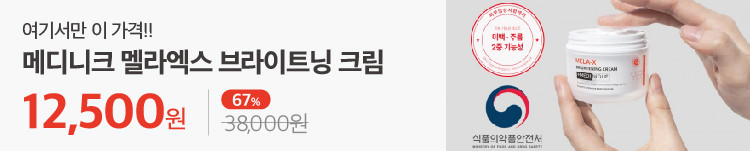 묵은 기미 완화 '메디니크 브라이트닝 크림'은 현재 택샵에서 67% 할인된 온라인 최저가 12,500원으로 구매할 수 있다. 방치할수록 심해지는 피부색소 질환, 심해지기 전 지금부터 꾸준히 관리해 보자.