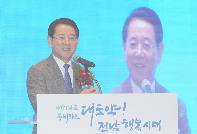 김영록 전남도지사가 20일 오전 그랜드하얏트 서울에서 열린 수도권 투자유치설명회에서 인사말을 하고있다./전남도