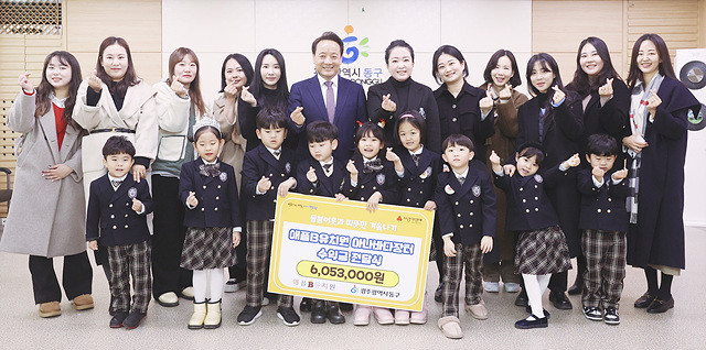 광주시 동구(청장 임택)에 소재한 애플B 유치원(원장 최봉훈)은 22일 연말연시를 맞아 광주시 동구 관내 취약계층을 위해 사용해 달라며 아나바다 장터 수익금을 기부하는 전달식을 진행했다.